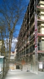 Am Markt 7, Tailfingen. Besondere Herausforderung: Baustelle im Stadtzentrum. Anpassung Fassadengerüst an Bauzustände bei Absturzhöhen bis 15m. Fertigteilmontage. Vermeidung der Absturzgefahr im Bereich Deckenöffnungen und Aufzugsschacht. Ausleuchtung aller Baustellenbereiche, v.a. in Wintermonaten im Rohbauzustand. Vergleichbare Aufgabe dann auch beim Neubau Am Markt 8, Tailfingen, im Zuge unseres Architekturauftrages.