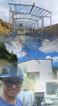 Neubau Produktionshalle, Truchtelfingen. Besondere Herausforderung: Errichtung der Halle in enger Lage zwischen Steinbruch und Bestandshalle. Erschwerte Erreichbarkeit der Baustelle sowie Arbeiten während des laufenden Betriebs in unmittelbarer Nähe. Organisation der Stahlbauarbeiten als Fertigteilmontage, ohne Gerüst, mit Anseilsicherung und Fangnetzen.