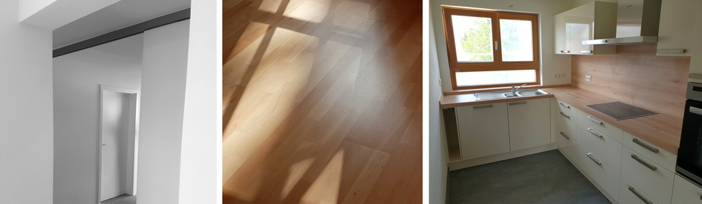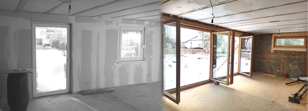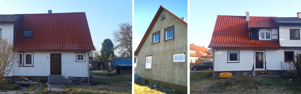 Sanierung einer Doppelhaushälfte auf KfW-85-Niveau. Das Gebäude wurde uns von seiner künftigen Besitzerin in einem "teilsanierten" Zustand anvertraut. Allerdings stellten sich die vergangenen Sanierungsversuche als mangelhaft dar und entsprachen auch nicht dem guten Geschmack unserer Bauherrin. Gemeinsam schafften wir es, das angeschlagene, unscheinbare Gebäude in ein anspruchs-volles, selbstbewusstes Häuschen zu verwandeln. Die Räume im DG wurden vergrößert. Vor allem aber wurde der Wohnbereich im Erdgeschoss zu dem großen Grundstück hin geöffnet und dadurch extrem aufgeewertet. Die vorgelagerte Holzterrasse erweitert den Wohnraum an schönen Tagen. Hochwertige Materialien im Innen- und Außenbereich und eine sorgfältige Detaillierung runden das Bild des kleinen aber feinen Gebäudes ab. Die Haustechik wurde komplett erneuert und besteht aus einer Gas-Zentralheizung mit solarer Brauchwassererwärmung und - Heizungsunterstützung. Neben den klassischen Architektenaufgaben übernahmen wir auch bei diesem Haus die energetische Berechnung einschl. eines detaillierten Wärmebrückennachweises, die Baubegleitung nach KfW-Vorgaben einschl. des abschließenden, erfolgreichen Drucktests.