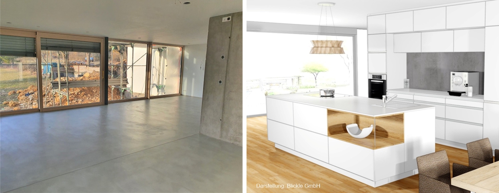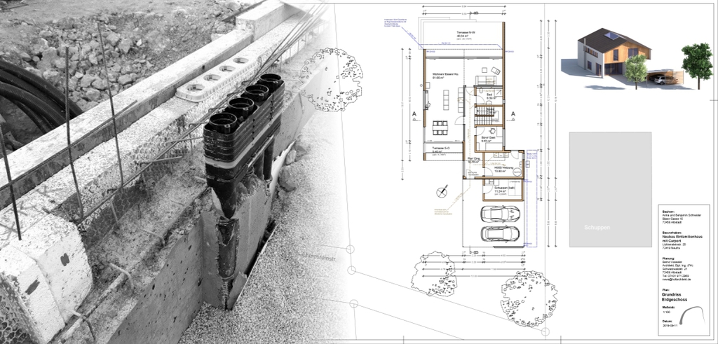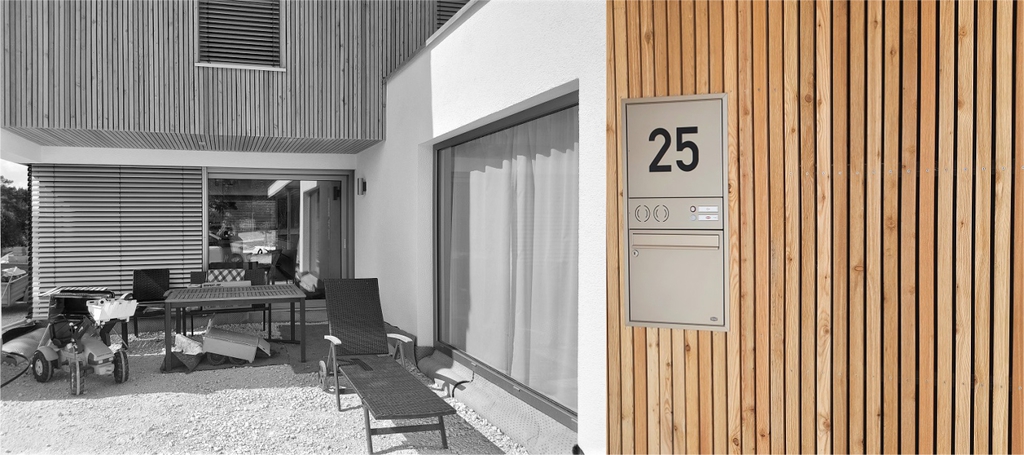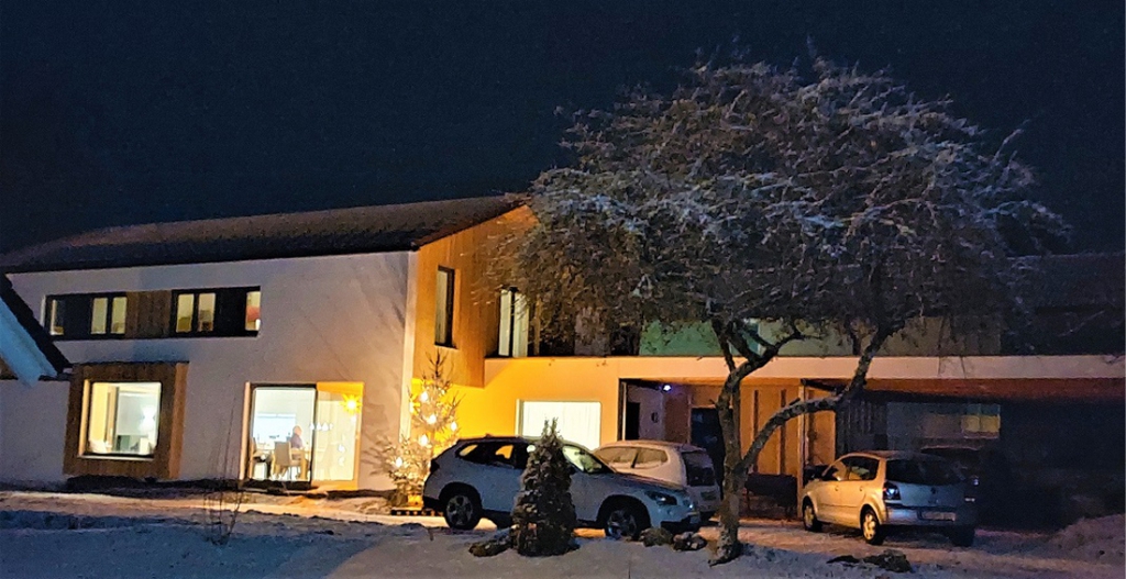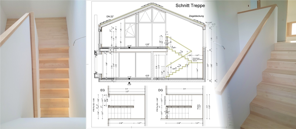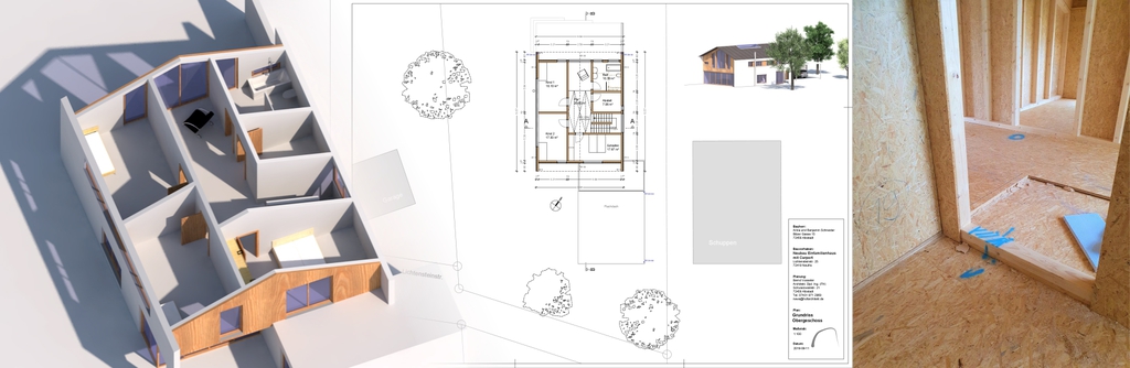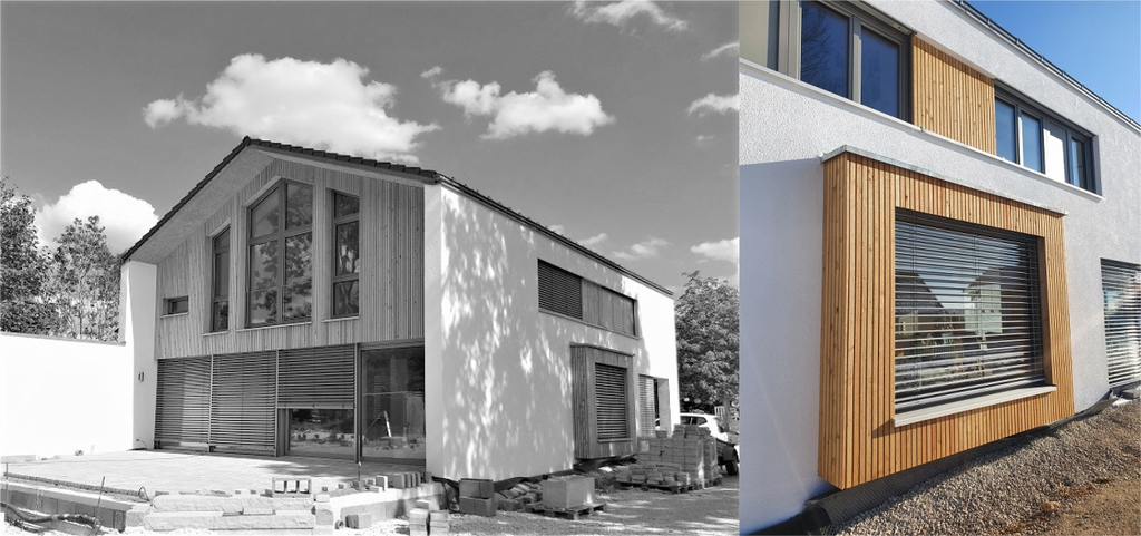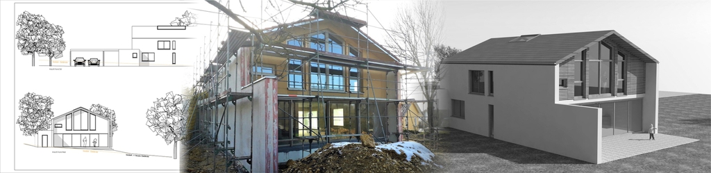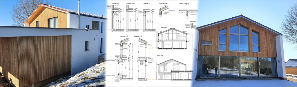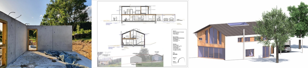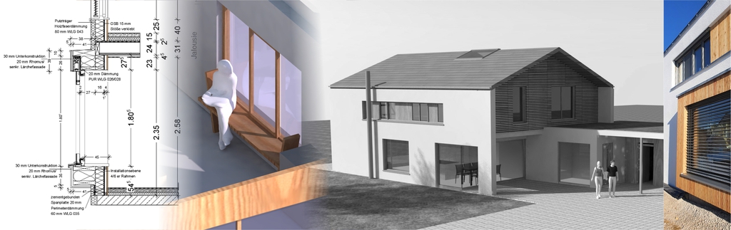 Es gibt nichts Schöneres, aber auch nichts Schwierigers, als mit einem "weißen Blatt Papier" zu beginnen. Was man aber immer hat, ist das Grundstück mit seiner Umgebung und Orientierung. Und besser als bei diesem Projekt geht es kaum: letztes Haus in einer Sackgasse am Ortsrand mit nicht enden wollendem Grundstück und Blick ins Naturschutzgebiet. Schwierig nur, dass dieser Blick nach Nord-West orientiert ist und man trotzdem gerne die Morgensonne erleben -, die Sonne der Südseite ins Gebäude holen - und die Abendsonne auf der Terrasse genießen möchte. Hinzu kommt das gewünschte Raumprogramm mit verschiedenen Haustechnikvarianten, optische und haptische Vorstellungen und wie immer auch ein Budget, das nach Möglichkeit nicht überschritten werden sollte. Dank ausreichender Zeit für Entwurf samt fortwährender Überprüfung und Optimierung sowie dem blindem Verständnis zwischen Bauherrschaft und Architekt konnten all diese Aspekte berücksichtigt werden. Entstanden ist ein genau zu diesem Ort passendes, modernes Wohnhaus in Holzständerbauweise, mit Ziegeldeckung, einer Mischung aus verputzten und holzbekleideten Fassaden und mit Holz-Alu-Fenstern. Die Wand- und Deckenoberflächen der Wohnräume sind hell und fein gehalten, als Kontrast zu Sichtbeton und Sichtestrich. Holzelemente wie die Treppe oder das "Sitzfenster" zwischen Ess- und Wohnbereich bringen "Wärme" ins Gebäude. Die eigentliche Wärme wird über den Fußboden verteilt und von einer Pelletheizung erzeugt. Eine mechanische Lüftungsanlage mit Wärmerückgewinnung, eine Regenwasserzisterne und eine smarte Elektrosteuerung machen die Haustechnik perfekt. Tolles Ergebnis, für eine tolle Familie, die den Architekten nebst Honorar mit eigenem Honig verwöhnt!